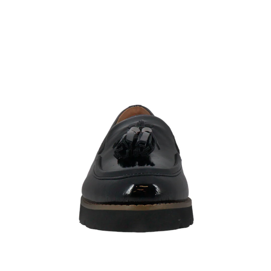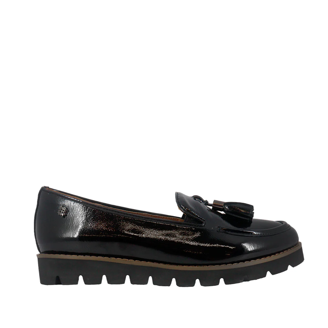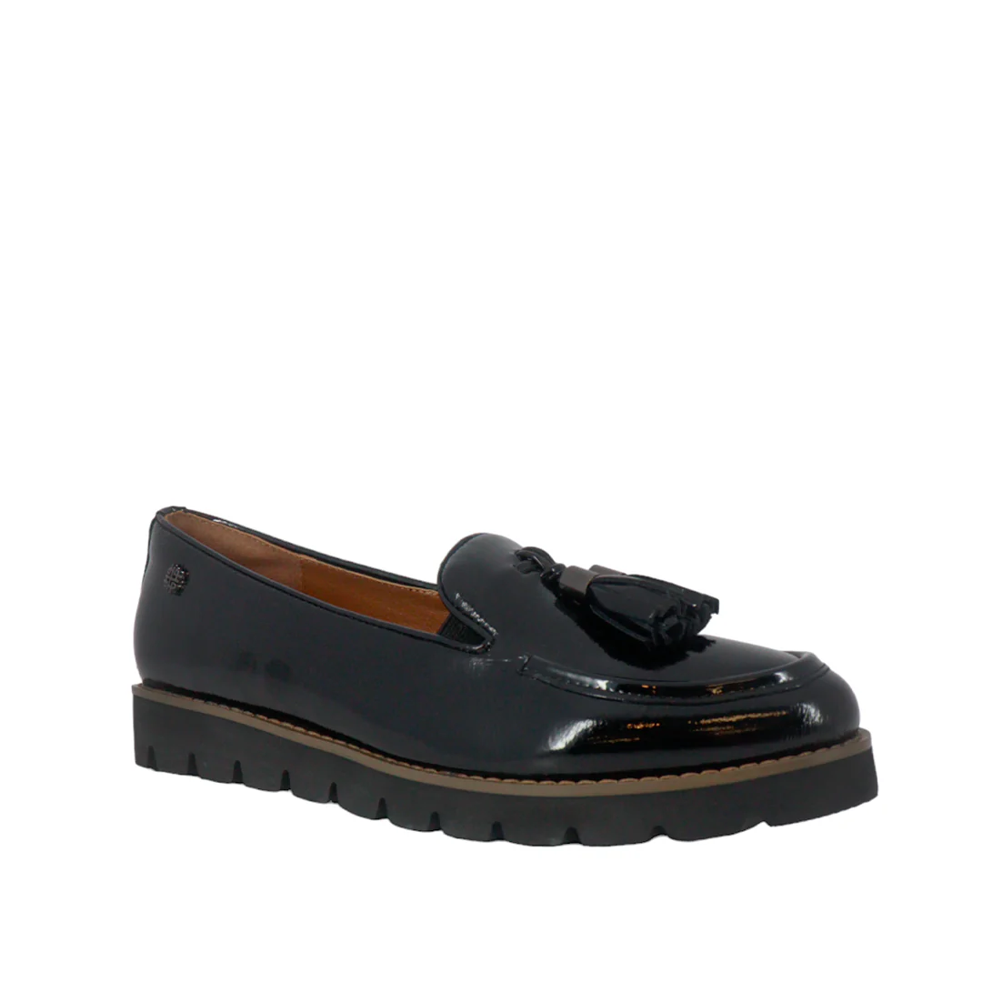 Mocasines elaborados de charol con plantilla preconformada de espuma de PU que brinda alto rendimiento y confort al caminar. Cuenta con suela de EVA ligera y flexible.