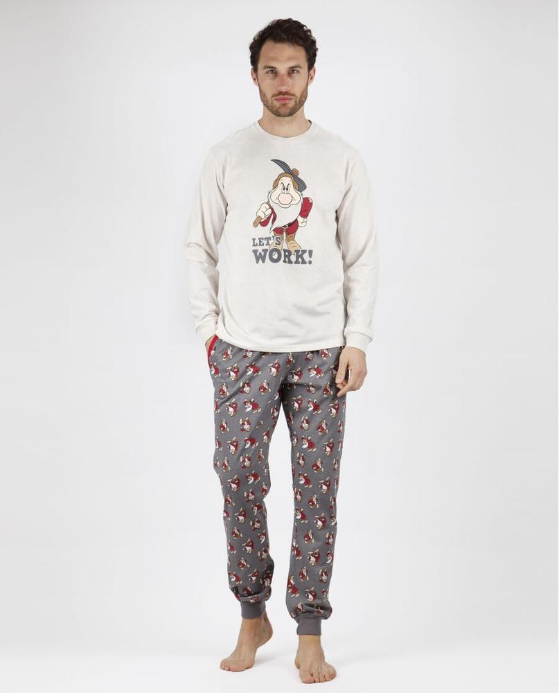 Pijama hombre de punto de algodón, de manga larga, cuello redondo y pantalón largo.