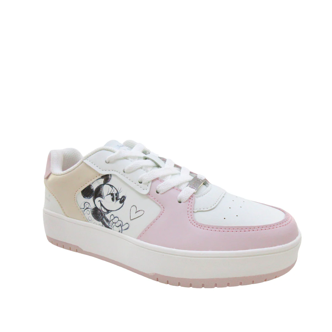 ¡Con estas zapatillas de mujer en blanco con el diseño del personaje Minnie, llevarás estilo y comodidad a tus pies! Hechas con material sintético de alta calidad, estas zapatillas serán la envidia de todos. ¡Presume de tu amor por Minnie con estilo!